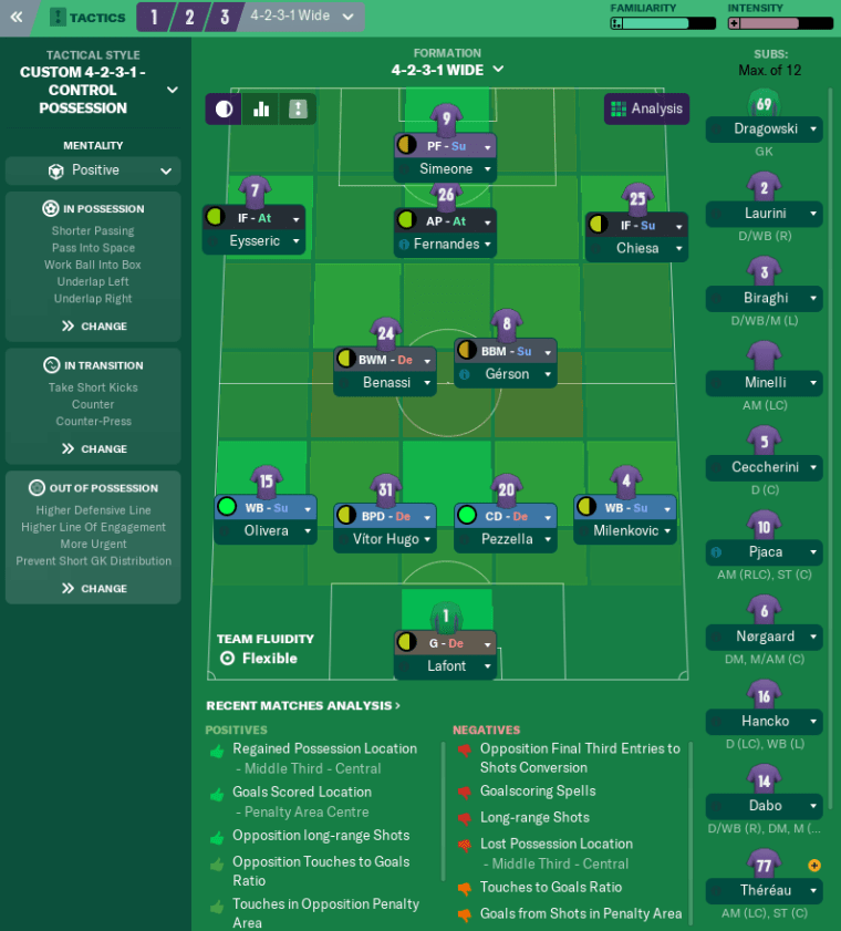 Sassuolo were beginning their sixth season in Serie A, having recently established themselves as a lower-mid-table side. They deserved the utmost respect, but I was still confident enough in getting a result to test out the 4-2-3-1 in competitive action for the first time.