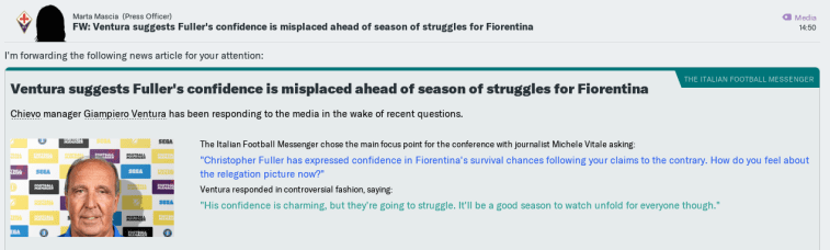 So far, so good. Fiorentina have kicked off with back-to-back wins, and I’m still unbeaten on FM19. Come back soon to find out if we can defy Giampiero Ventura’s expectations and carry on our impressive start into September.