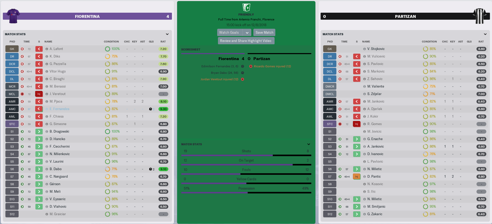 So far, so good. Fiorentina have kicked off with back-to-back wins, and I’m still unbeaten on FM19. Come back soon to find out if we can defy Giampiero Ventura’s expectations and carry on our impressive start into September.