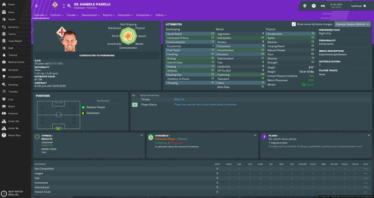 33-year-old Daniele Padelli had spent most of his career as a bench-warmer, save for a few years as Torino’s first-choice in the mid-2010s. I signed him on the cheap from Inter mainly for his ‘Perfectionist’ personality (which, incidentally, he shares with Simeone). Though Padelli might not play much, I’m hoping that his professionalism can rub off on Lafont.