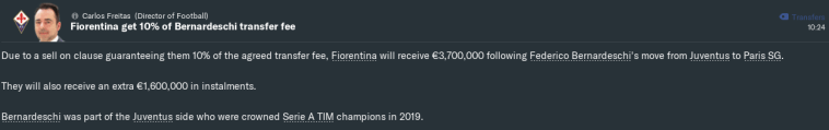 In other news, former Fiorentina man Federico Bernardeschi completed a €53million deadline-day move from Juventus to Paris Saint-Germain. The 10% sell-on clause from the initial transfer two years ago meant that a good few million Euro would go into our kitty. Some of that would go towards us upgrading our data analysis facilities from Basic to… erm, still Basic.