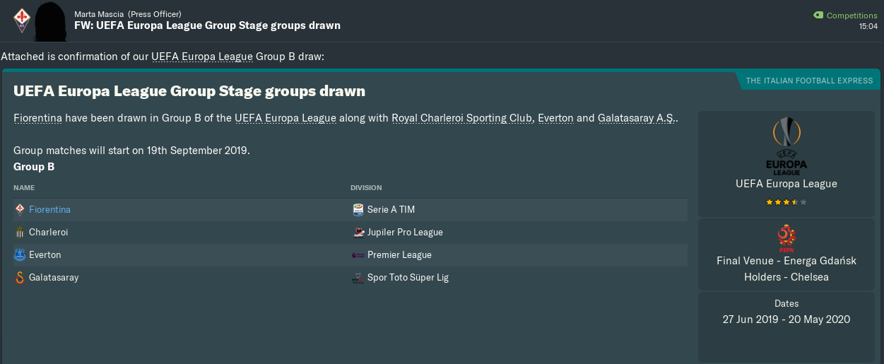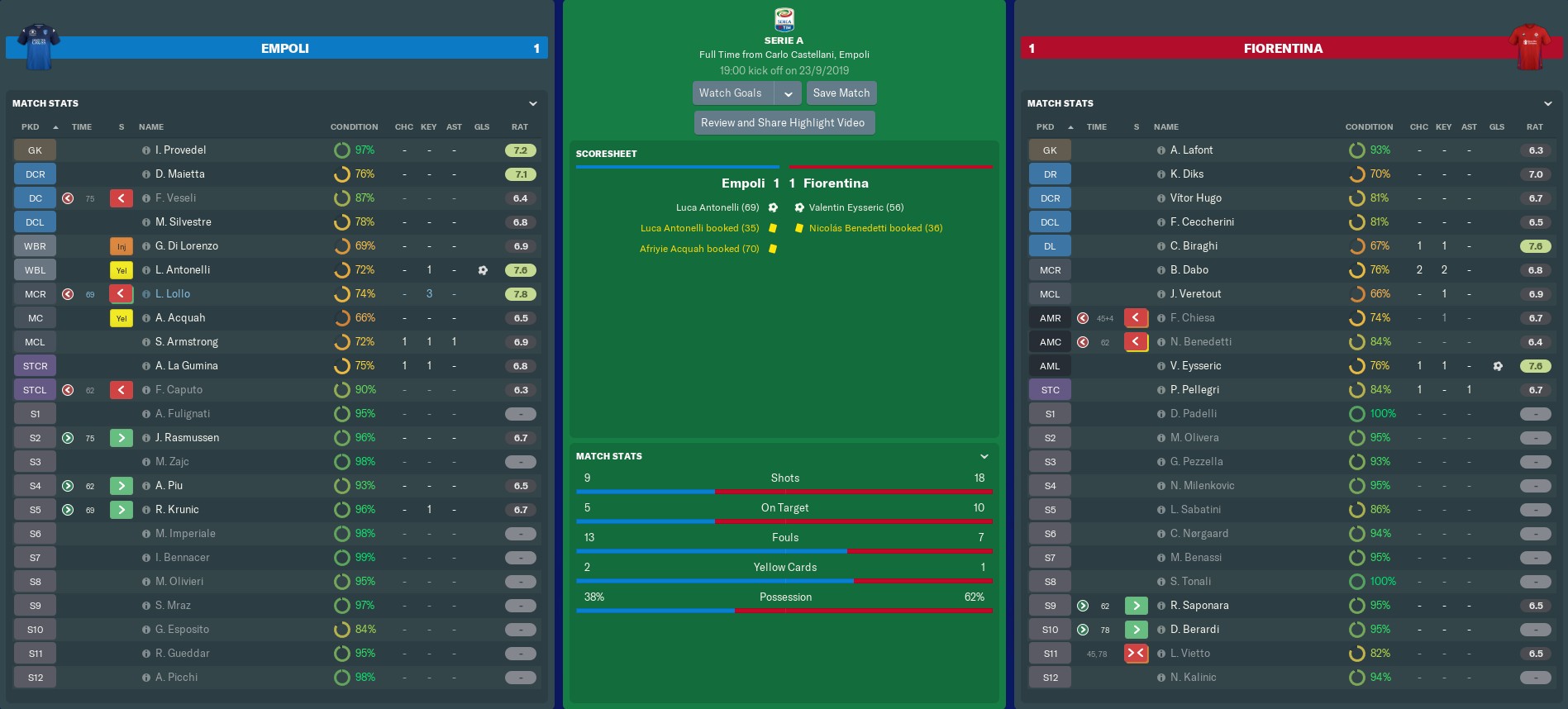 Excellent stuff mate…. I am really enjoying FM19 and Fiorentina likewise will be interesting to see how we both get on 🇮🇹