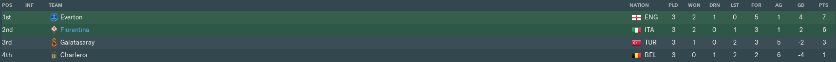 Those three points helped us consolidate 2nd place in our group at the halfway stage. We were now just a point off leaders Everton, who had surprisingly only managed a 1-1 draw in Belgium against Charleroi.