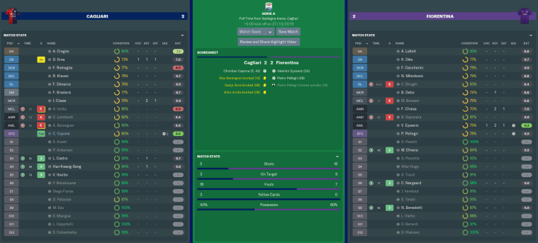CAGLIARI vs FIORENTINA (Serie A, Match 9)