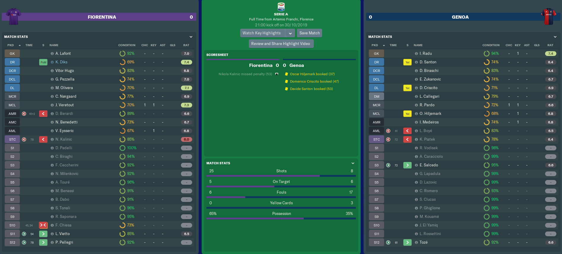 Just give me a couple of days to think things over, and then I’ll get back to you. In the meantime, I’d suggest you check out “Florence And The Goal Machine” by The Wide Playmaker. He has been a big part of the FM blogging community for a good few years, and he too is writing about his Fiorentina career on FM19.