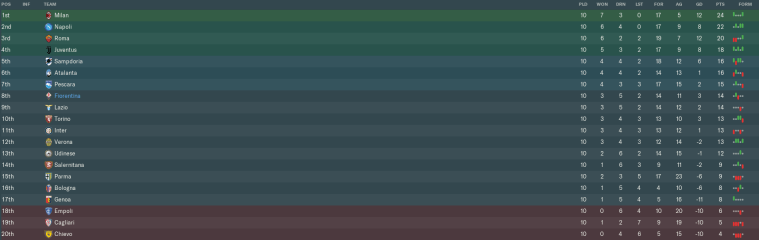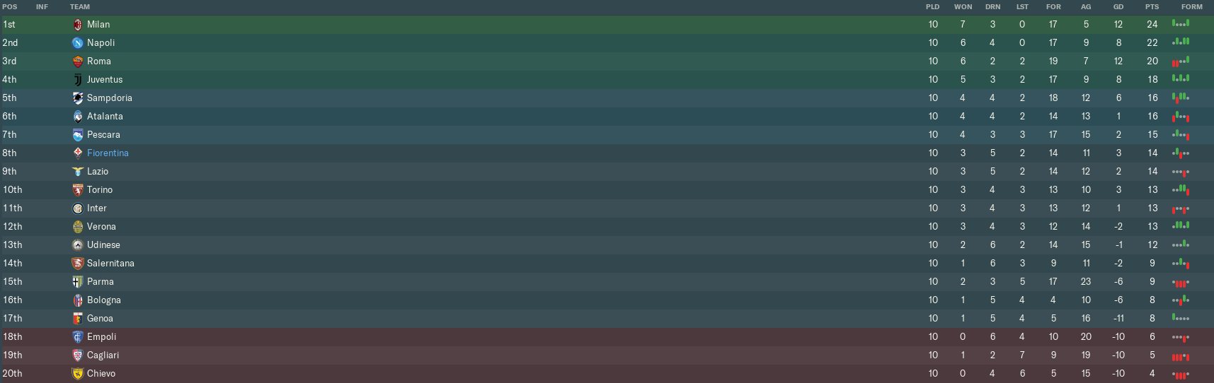And so we’re in 8th place after a disappointing first quarter to the season. If it’s any consolation, at least Lazio and Inter appear to be struggling just a little more.