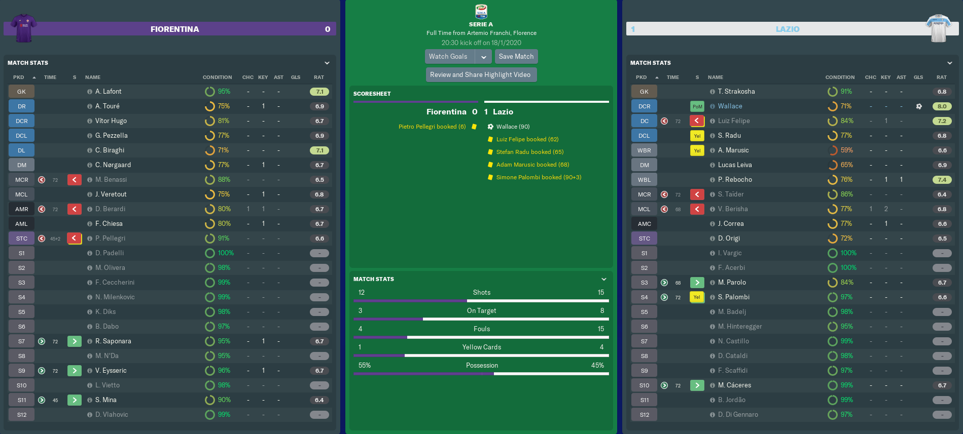 FIORENTINA vs LAZIO (Serie A, Match 20)