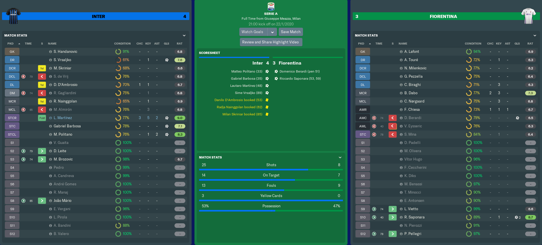 Inter 4, Fiorentina 3. After all the effort we had put in, we really did not deserve that.