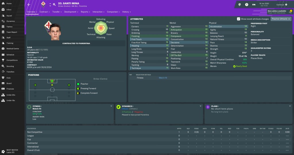 You see, Monaco had renewed their interest in our midfield mezzala. Between the Lazio and Inter games, they offered us €16million – potentially rising to €21million – to sign him. I turned the offer down, mainly because he was almost irreplaceable, but also because we literally could not replace him, now that Serie A’s transfer window had slammed shut.