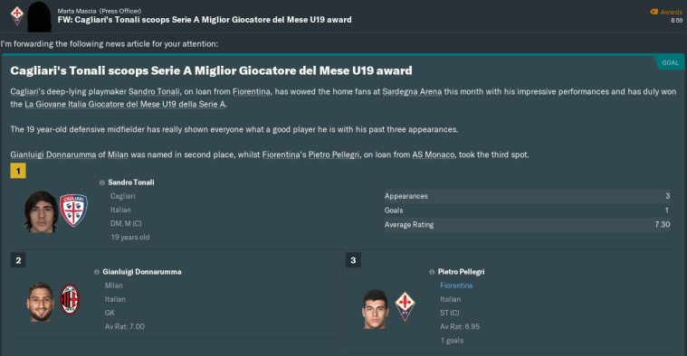 Also on the horizon in this chapter is the first leg of our Coppa Italia Semi Final, along with a bunch of league matches against lowly opponents. I might have some very encouraging news on the contract front as well…