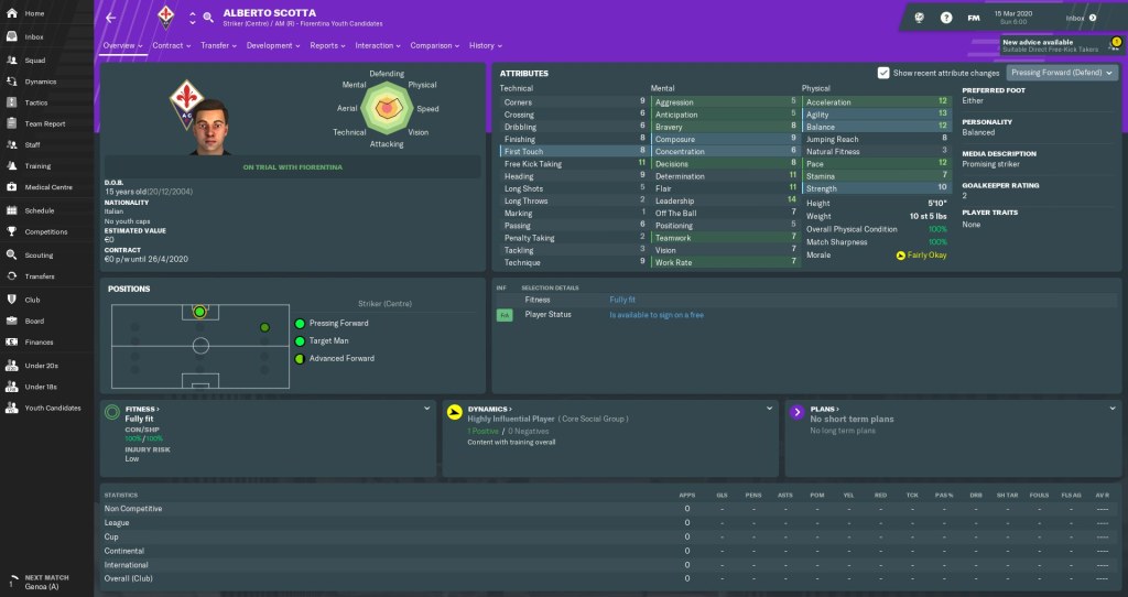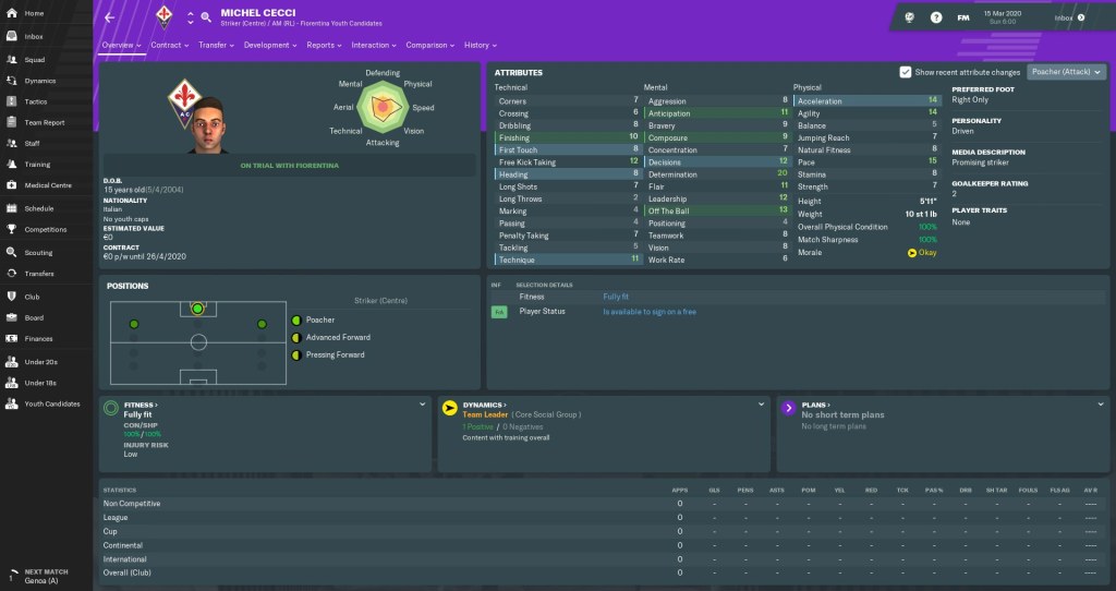 Luckily, Michel Cecci is a die-hard Viola tifoso. He has a Driven personality (which I love), his technique looks good even now, and he’s got huge potential as an inside-forward on the left. Could we have unearthed the heir to Chiesa’s throne?