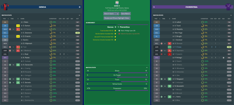 The matches keep coming thick and fast for my Fiorentina team. We’re still fighting on three fronts, but is it possible to reach the Coppa Italia Final, progress to the latter stages of the Europa League AND maintain a top-six placing in Serie A? With a squad that’s perhaps lacking depth?