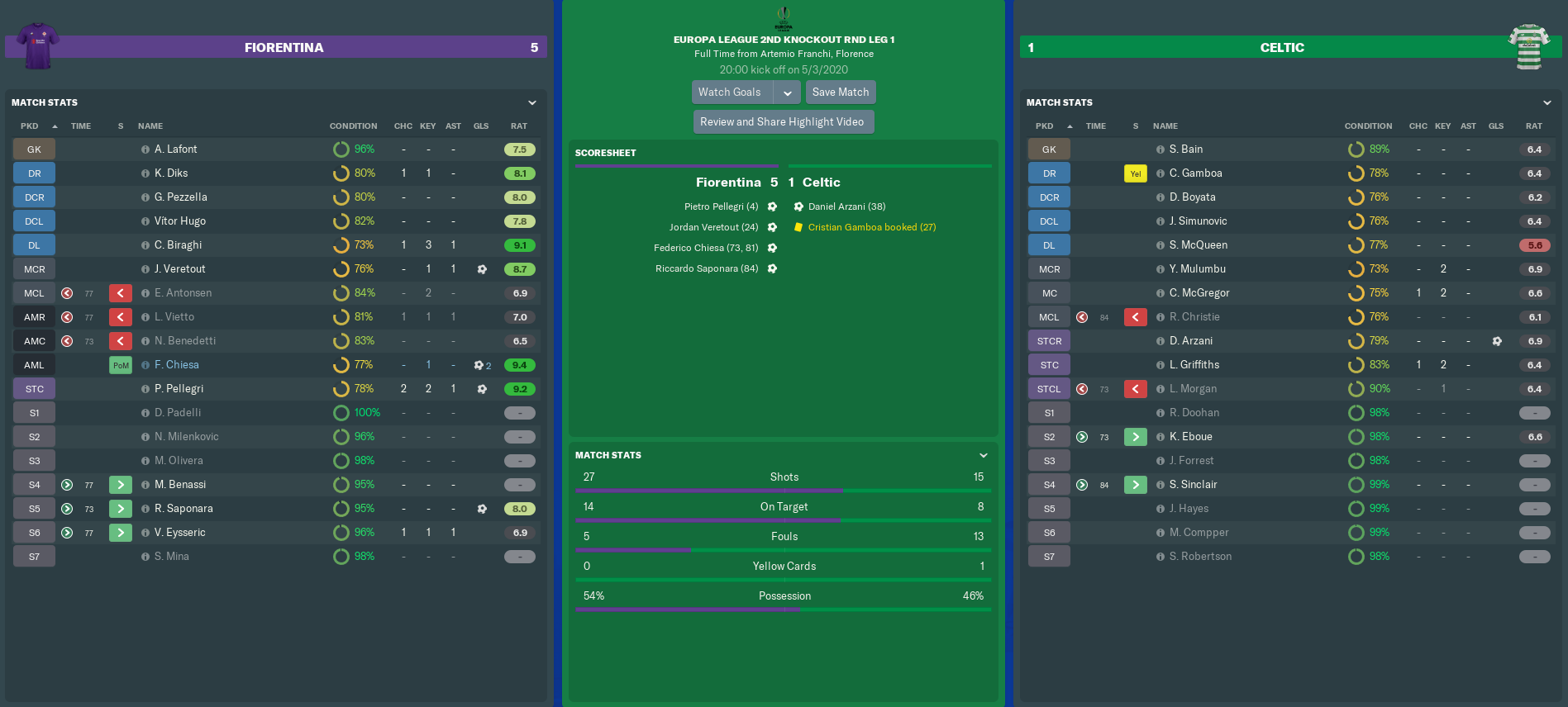 5-1 to Fiorentina after the first 90 minutes. Was the tie over already, or could Celtic mount an astonishing fightback in Glasgow a week later?