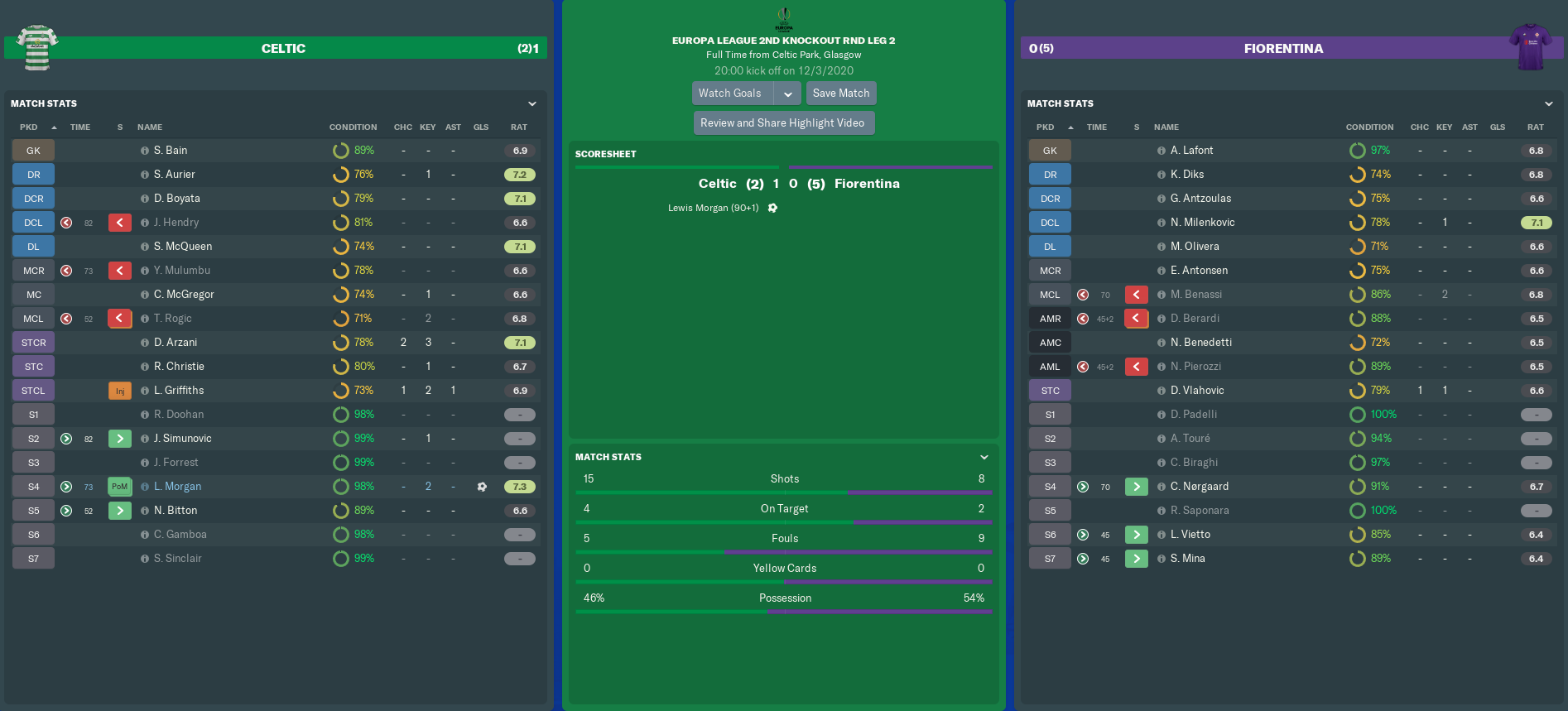 Having lost back-to-back matches, the pressure was really on us when we continued our Europa League campaign. Viola fans were expecting nothing less than a comfortable win over Celtic to put us on course for the Quarter Finals.