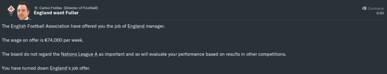 Sadly, my ongoing work with Fiorentina meant I had to reject the offer… so the FA poached Sean Dyche from Burnley instead. Brexit means Brexit.