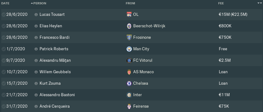 Now, what about two key players who didn’t leave? Germán Pezzella was highly-coveted by Napoli and Milan, both of whom submitted several miserly offers for the Viola captain. They both baulked at my €30million asking price, while a €45million tag around Marco Benassi‘s neck deterred Tottenham from making any bids for the wantaway midfield ace. Benassi wasn’t going anywhere, and that was that.
