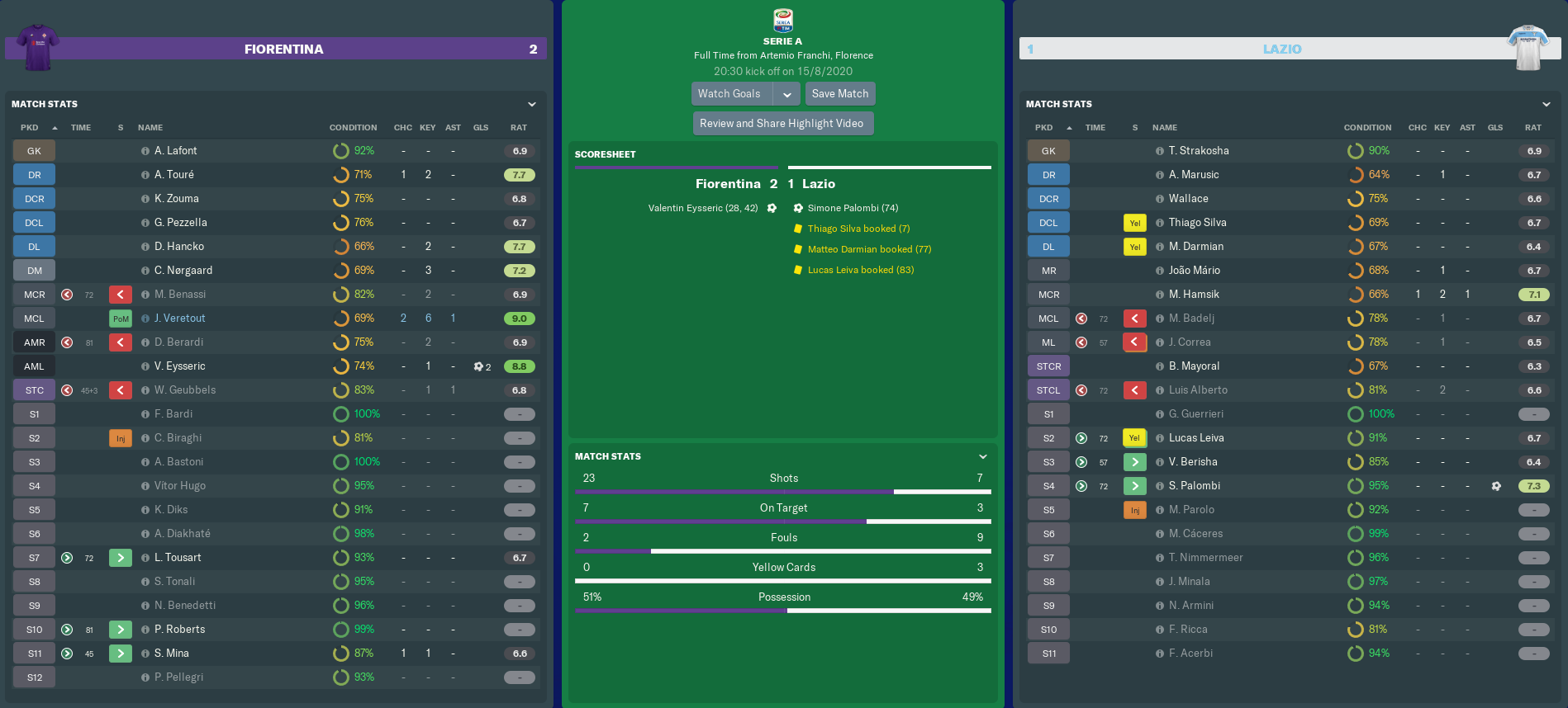 FIORENTINA vs LAZIO (Serie A, Match 1)