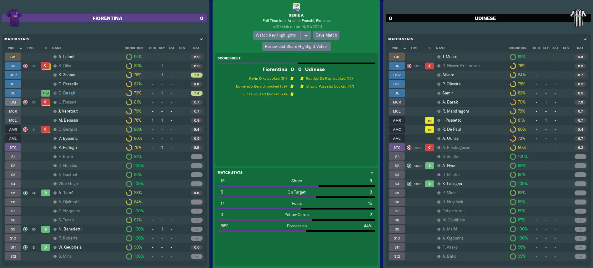 FIORENTINA vs UDINESE (Serie A, Match 9)