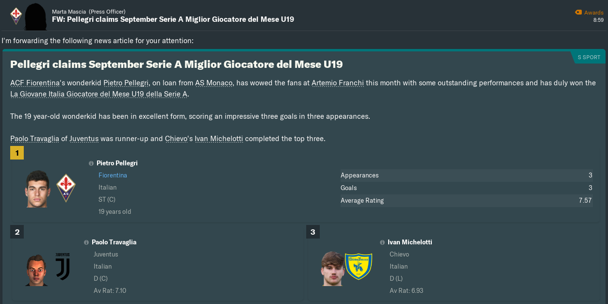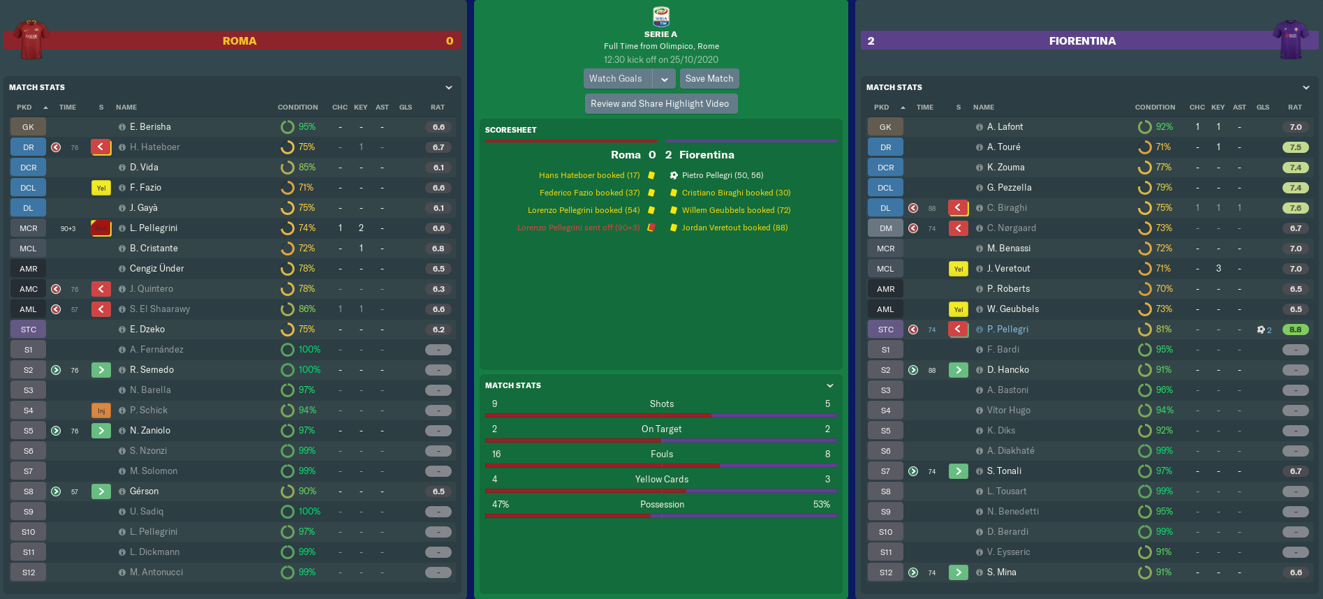 Of the big beasts who awaited us in this three-game stretch, I was most pleased that we got to face Roma first. The Giallorossi had lost their last three matches without scoring, and they had never beaten Fiorentina under my stewardship.