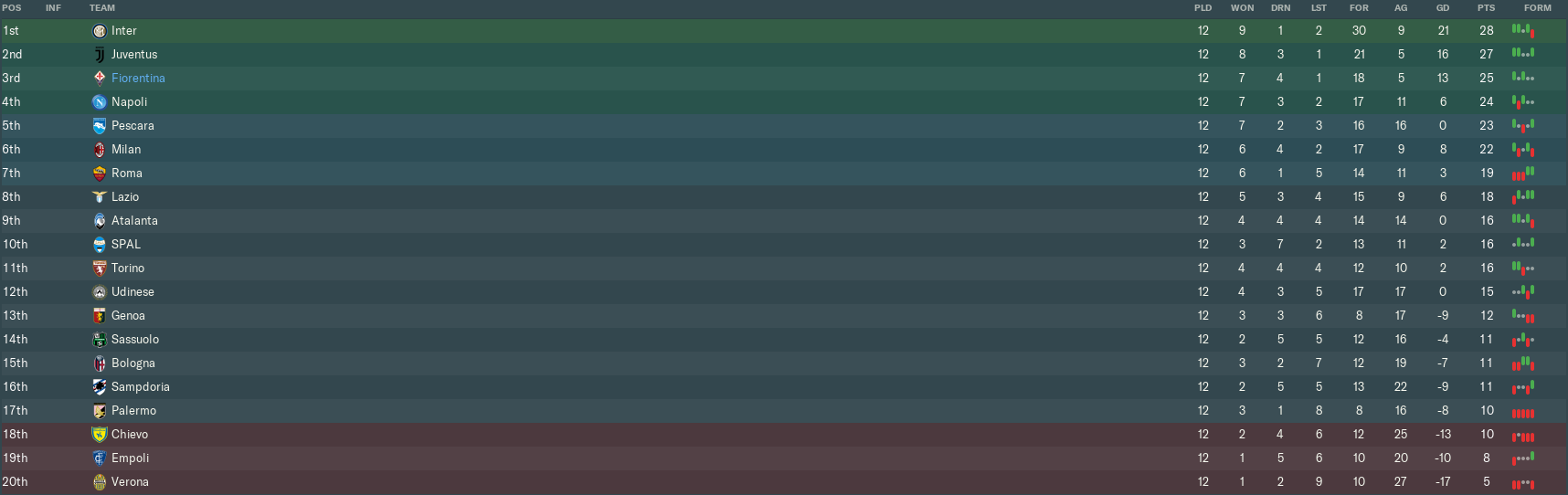 So far, so good, but history tells us there can be no room for complacency. Fiorentina started the 1992/1993 season very well under Luigi Radice, only to fall apart when the coach was sacked following a row with the club chairman. They finished 16th and were subsequently relegated.
