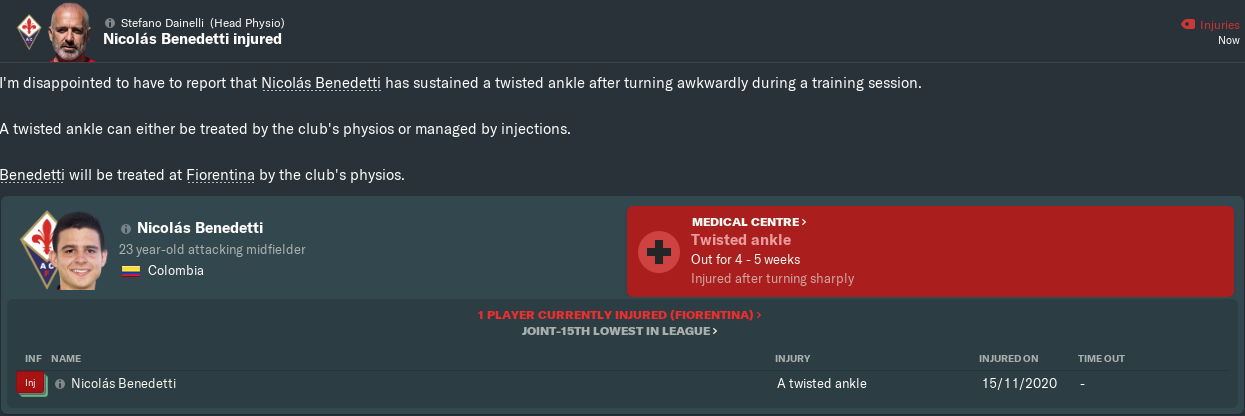As it so happened, that shock loss coincided with the final international break of the year. That meant I had a fortnight to work my team back to their best. Unfortunately, one player was pushed just a little too far: