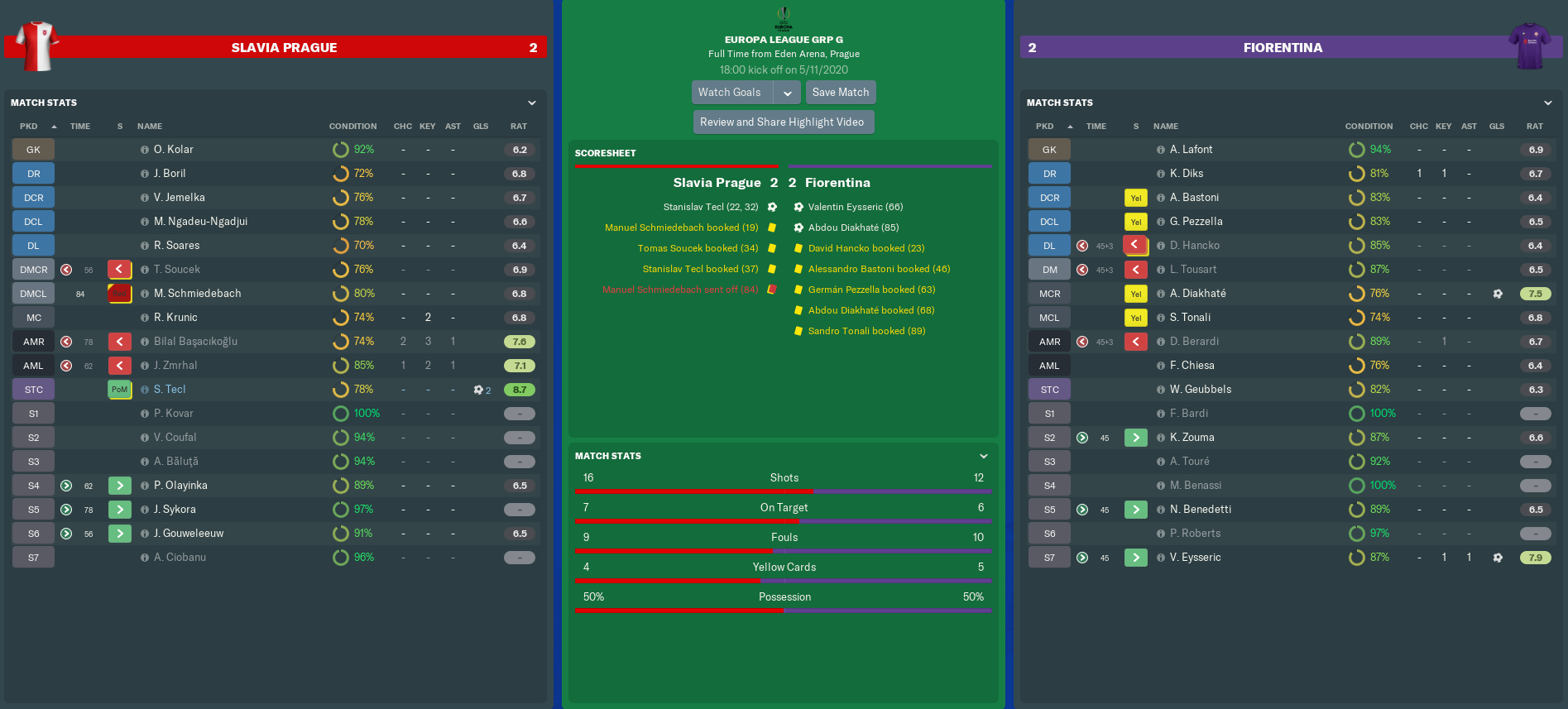 Once the dust settled, Eysseric hoisted the ball into the hosts’ penalty area. Kolar came out of his six-yard box to try and meet it, but he was comfortably beaten by Diakhaté, who headed in his first competitive goal for Fiorentina! More importantly, that completed our fightback from 2-0 down and earned us a hard-earned point.