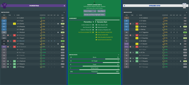 FIORENTINA vs DYNAMO KYIV (Europa League, Group G – Match 5)