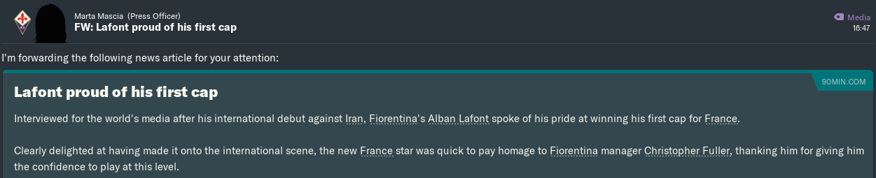 I hope you enjoyed this part, even if the results weren’t fantastic. One Fiorentina manager who does know how to transform the Viola into consistent winners is The Wide Playmaker, who’s just posted the latest chapter of his “Florence And The Goal Machine” career. Give that a read if you haven’t already.