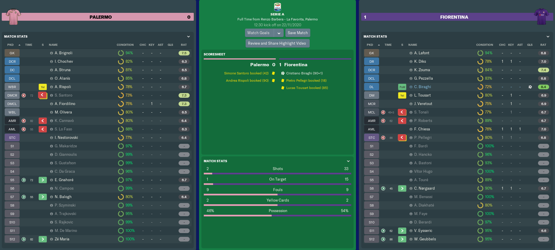 PALERMO vs FIORENTINA (Serie A, Match 14)