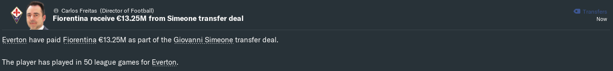 Cheers. I was always confident Simeone would make 50 appearances for Everton (he’s doing alright for them, considering they keep changing managers), but I like to keep an eye on any sellable clauses.