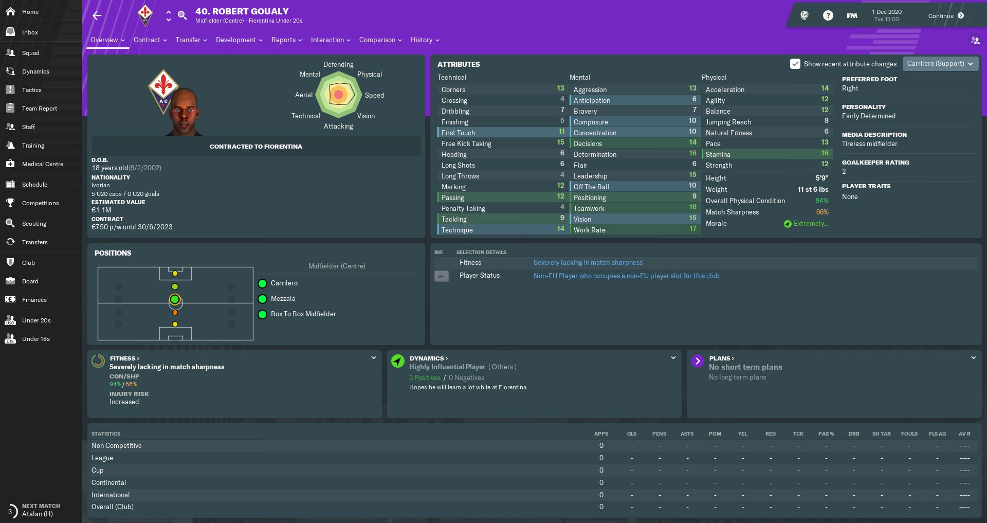 Goualy is an 18-year-old box-to-box midfielder with impressive technique and incredible stamina, not to mention a dab hand at free-kicks. He’s still a bit raw to be playing top-flight football, so he might benefit from going out on loan in January.