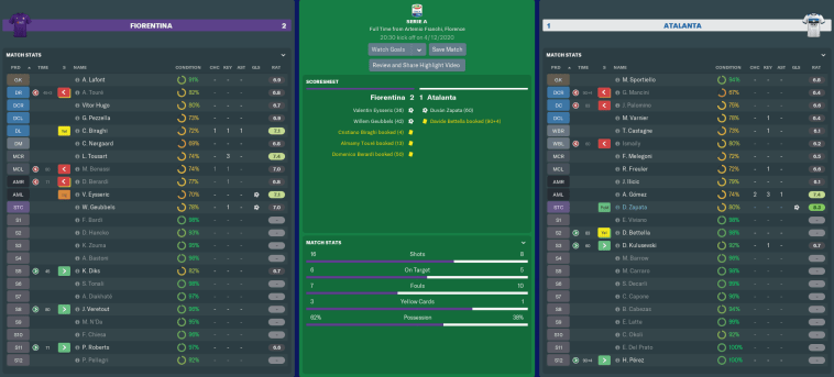 Our first match in December was against an Atalanta side who sat in 10th position, having lost just once in the previous three months. They also had one of our great nemeses of recent times in the Colombian striker Duván Zapata, who always seemed to get goal-hungry as soon as he saw the colour purple.