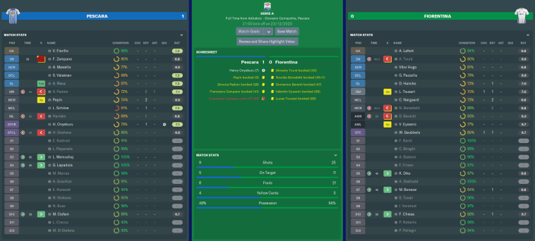 PESCARA vs FIORENTINA (Serie A, Match 19)