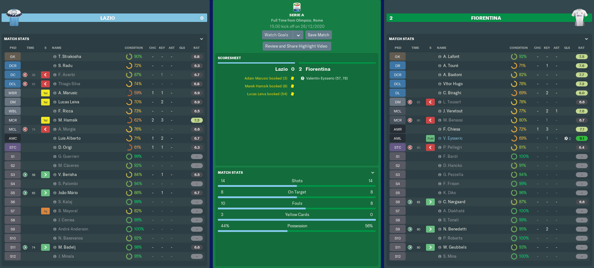 LAZIO vs FIORENTINA (Serie A, Match 20)