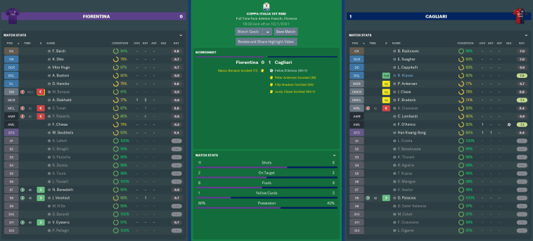 FIORENTINA vs CAGLIARI (Coppa Italia, Round 1)