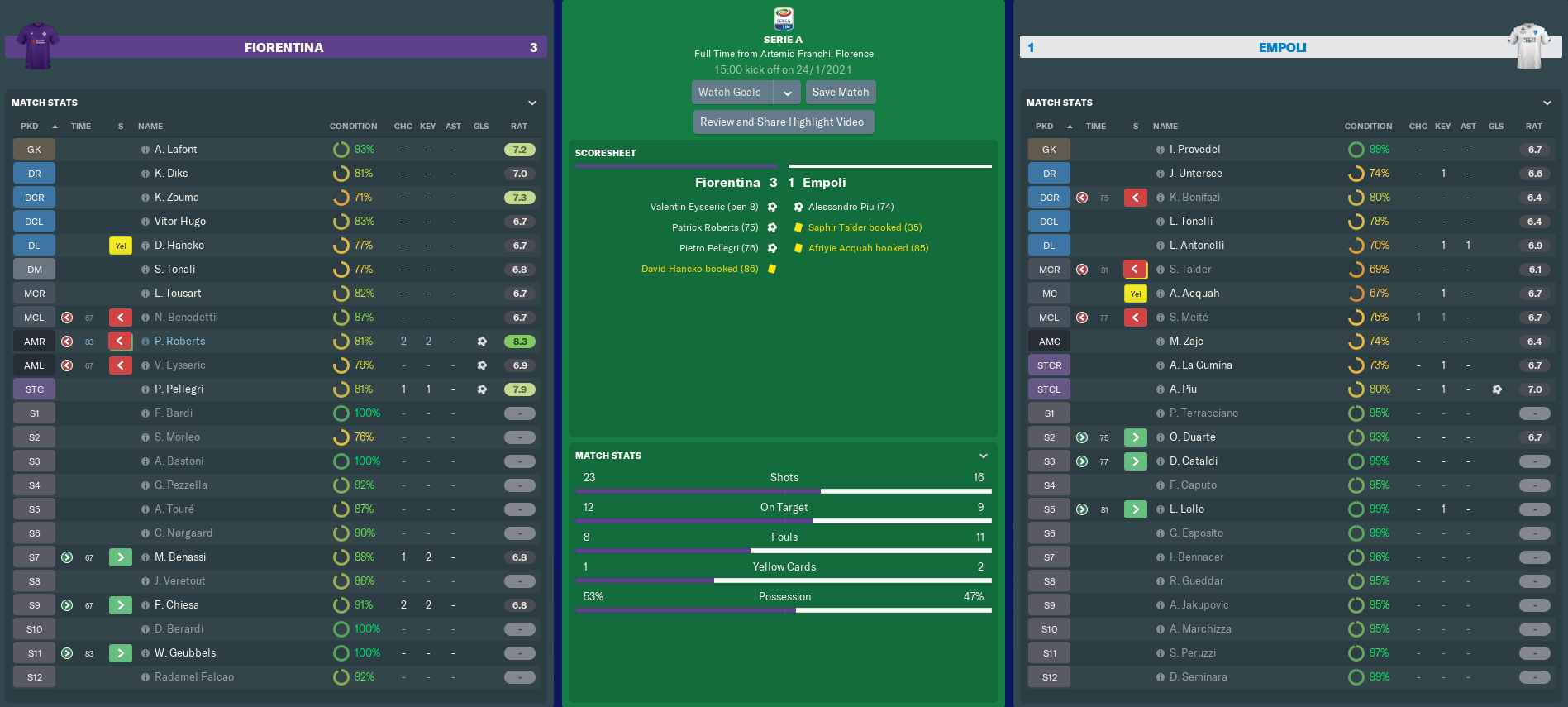 FIORENTINA vs EMPOLI (Serie A, Match 23)