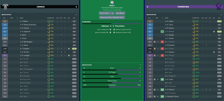 UDINESE vs FIORENTINA (Serie A, Match 28)