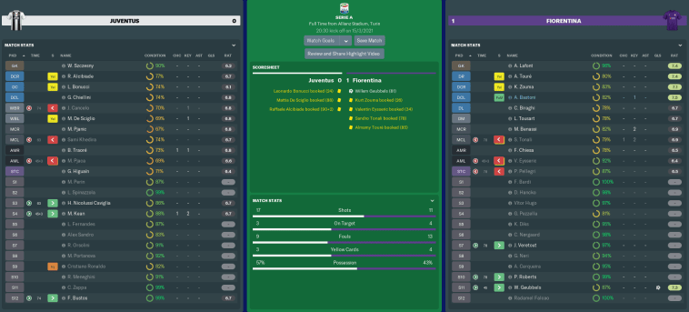 Veretout and Chiesa also failed to find the target in a tepid first half, and things wouldn’t get any better for us in the second. In fact, we couldn’t muster another attempt on goal after the break, thus going through the entire 90 minutes without registering a single shot on target. That was an unwanted record in any home match, regardless of the opposition.