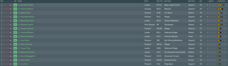 Damiano Fioretti looks decent enough for a centre-forward, but we’re already stacked with talent in that department, so he might struggle to make an impact. Federico Morelli perhaps stands a better chance of breaking into the first-team midfield if he reaches his potential. You’ll also notice a fellow Briton in attacking midfielder Jamie Smith, who’s originally from the exotic surrounds of… erm, Trowbridge.