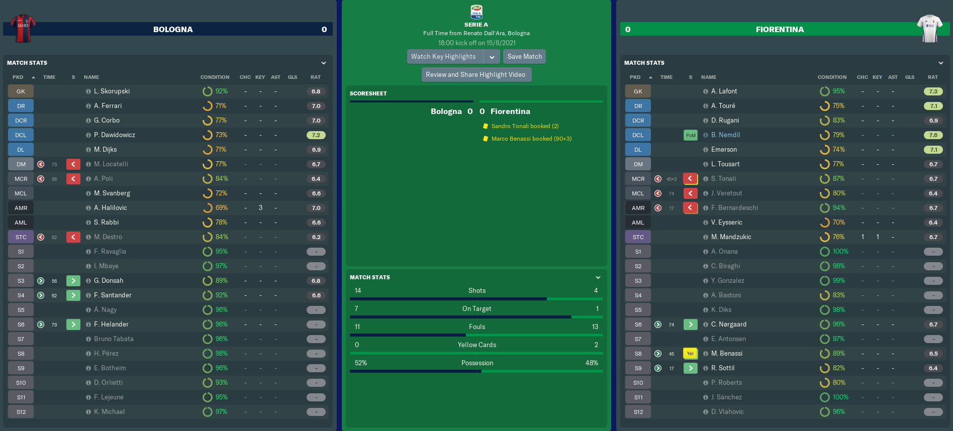 Pre-season is over, and now all the hard work begins in earnest. My fourth Serie A campaign in charge of Fiorentina kicks off with a trip to Bologna, followed by successive home games against Juventus and Pescara. We’re pretty strong starters here at the Artemio Franchi, and I’m confident we can fly out of the traps again.