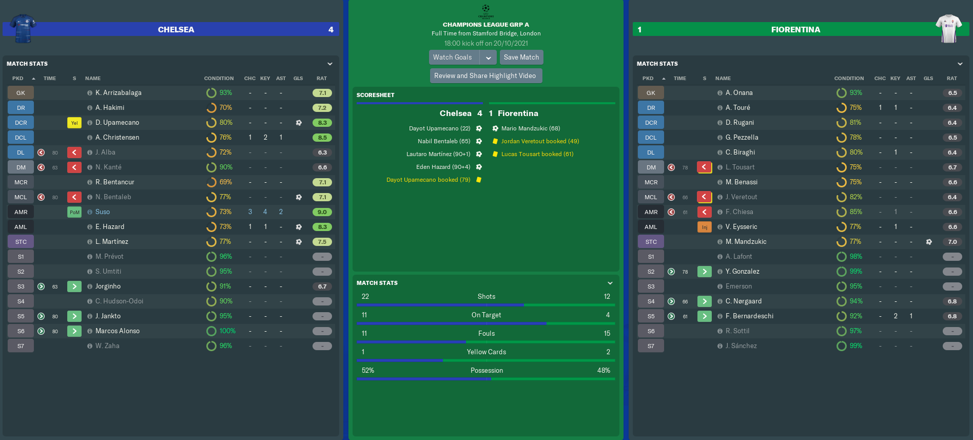 CHELSEA vs FIORENTINA (Champions League, Group A – Match 3)