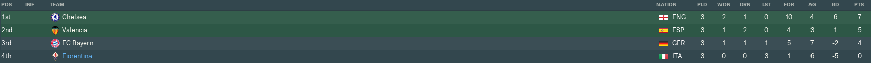 Needless to say, we were in dire straits at the halfway stage. Valencia were five points clear of us in 2nd place, despite squandering a 2-0 lead to draw 2-2 with Bayern. The Group A standings now made for very grim reading: