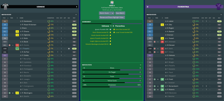 UDINESE vs FIORENTINA (Serie A, Match 9)