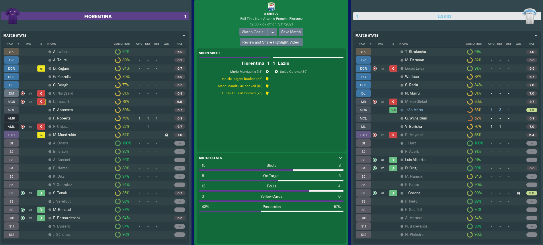 FIORENTINA vs LAZIO (Serie A, Match 12)