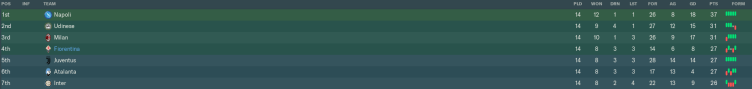 Leaving 70s rock references aside, we enter November in the middle of a tricky run of league fixtures. Having already faced Roma at home and Inter away in October (check out Part 36 if you missed that), we are now making plans for Lazio and Napoli. By the end of this month, we should have a good idea of where we really stand.