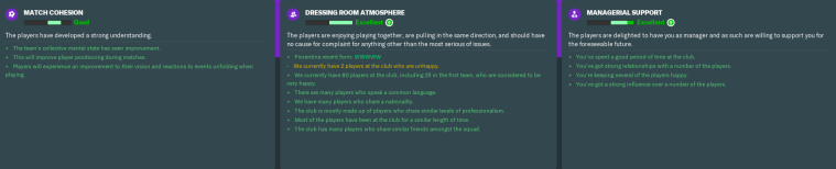 As in real-life, a happy team generally performs to – if not above – expectations. One of the keys to success in Football Manager is to keep morale as high as possible for as long as possible, thus minimising the risk of players getting grumpy. As well as getting good results (obviously) and putting in regular team-bonding sessions in training, I find that a well-judged team meeting can do wonders for morale.