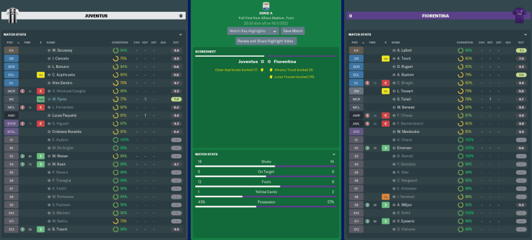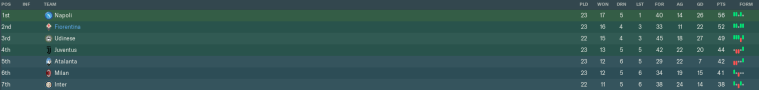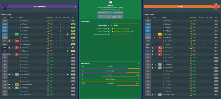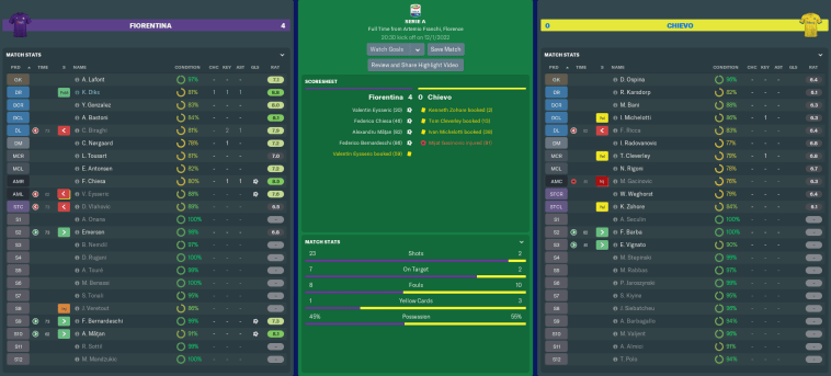 I’m now halfway through my final season with Fiorentina, and we’re well on course to have our best campaign yet. Inter have not defended their scudetto particularly well, which has left the door wide open for a number of teams to take advantage. Despite a few wobbles, we are most certainly in contention for Serie A glory.