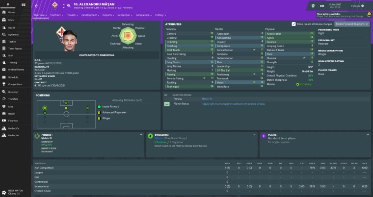 So I recalled Alexandru Mățan from his loan spell at Empoli. The young Romanian had not enjoyed a great half-season with the mid-table Azzurri, providing just three assists in 16 outings, but I reckon he could come good for us. Alex is an exceptional dribbler who is best-suited to an inside-forward role on the left flank, but he can also play on the right wing.