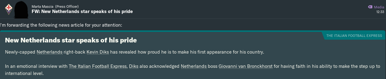 Italy also enjoyed a couple of emphatic friendly wins, thanks to a couple of Viola players. Bernardeschi scored twice against Boliva and once against South Korea, with Emerson also finding the net in the latter game.