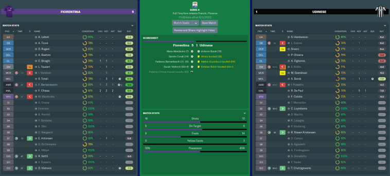 FIORENTINA vs UDINESE (Serie A, Match 28)